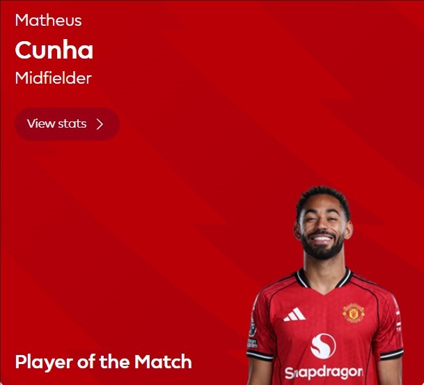 4月19日讯 官方消息,库尼亚当选曼联客场1-0切尔西的球迷票选全场最佳。